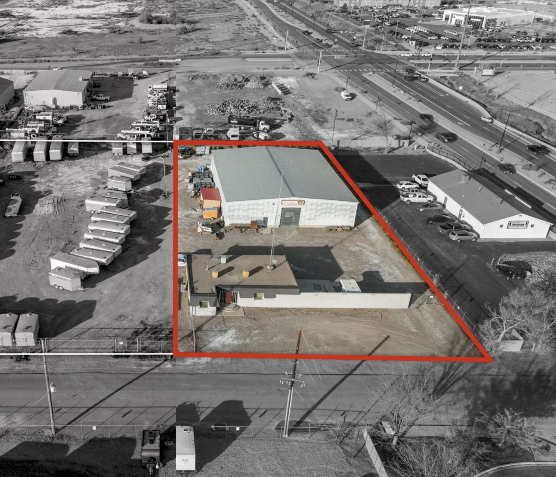 Rare opportunity for a secure, well-improved industrial property in Grand Junction. The fully fenced, one-acre site features an automatic electric gate, abundant parking, and convenience access to I-70 via 24 Road. Improvements include an 8,000 SF insulated metal shop with concrete floors, 14-foot automatic bay doors allowing pull-through traffic, and mezzanine, and multiple storage rooms, plus a 1,300 SF office with two bathrooms, and kitchen, and a camera security system. Recently upgraded AC throughout. Adjacent lot is also for sale, call listing agent for details.