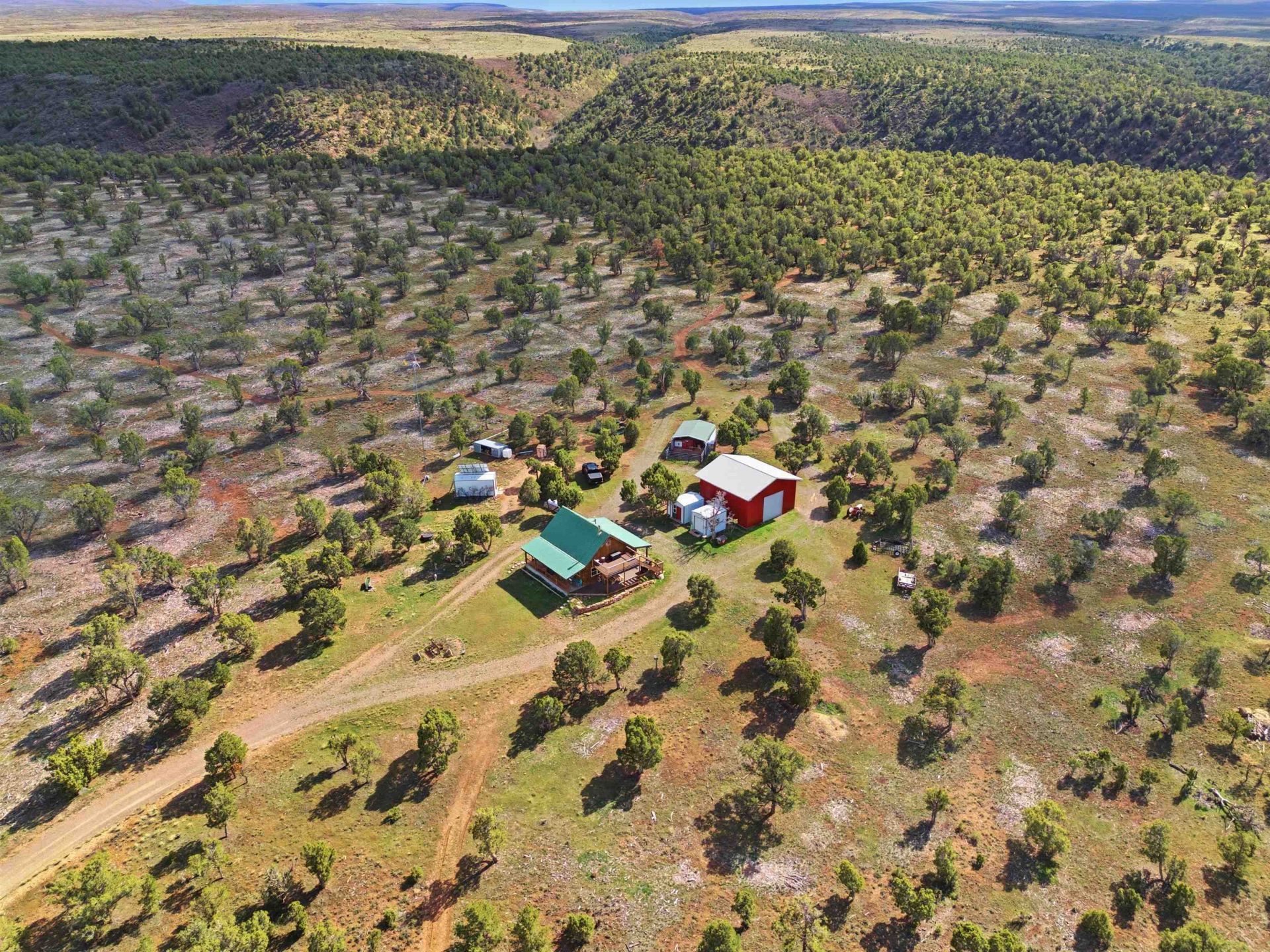 Beautiful log cabin on 40 acres in scenic Crawford County offering unobstructed mountain views and exceptional privacy. This 2 bed, 1 bath home features hardwood floors, an open-concept kitchen, and a spacious living and dining area anchored by a cozy wood-burning stove. Enjoy expansive outdoor living with a large wraparound deck and second-level patio, perfect for taking in the surrounding landscape. The property is well-suited for self-sufficient living with solar power, a wind turbine, well water, and a cistern system for consistent on-demand water. A newly built oversized metal shop and animal corral provide excellent functionality for work or recreation. Two tree stands offer prime hunting opportunities, making this an ideal setup for outdoor enthusiasts. Convenient access to B76 Road and close proximity to Black Canyon of the Gunnison National Park complete this rare Western Colorado offering. Shop space has plans for a mezanie/ Second Level.